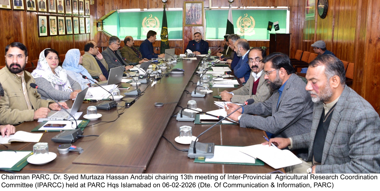 Chairman PARC, Dr. Syed Murtaza Hassan Andrabi chairing 13th meeting of Inter-Provincial Agricultural Research Coordination Committee (IPARCC) held at PARC Hqs Islamabad on 06-02-2026