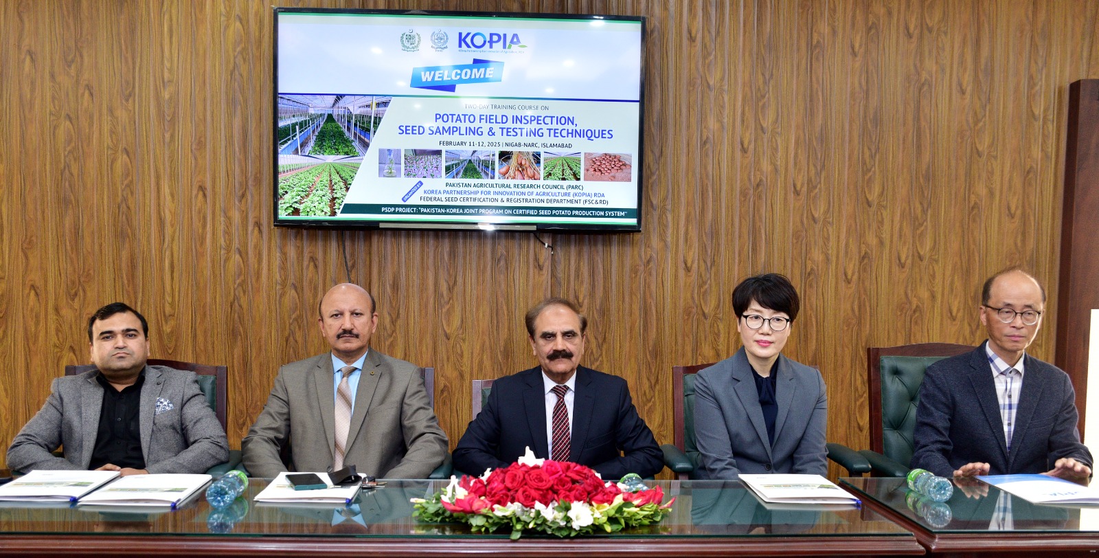 February 11, 2025, Chairman PARC, Dr. Ghulam Muhammad Ali chaired the inaugural session of two days training course on Potato Field Inspection, Seed Sampling and Testing Techniques, organized by NIGAB-PARC and KOPIA Pakistan Center. A high level delegation from Republic of Korea, led by Dr. Yoo Eun-Ha, Director KOPIA Division, RDA also joined the session and afterwards held a meeting with Chairman PARC at PARC Hqs to discuss matters of mutual interest.