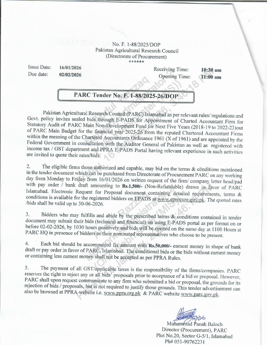 PARC INVITATION TO BID NO. F.188/202526/DOP