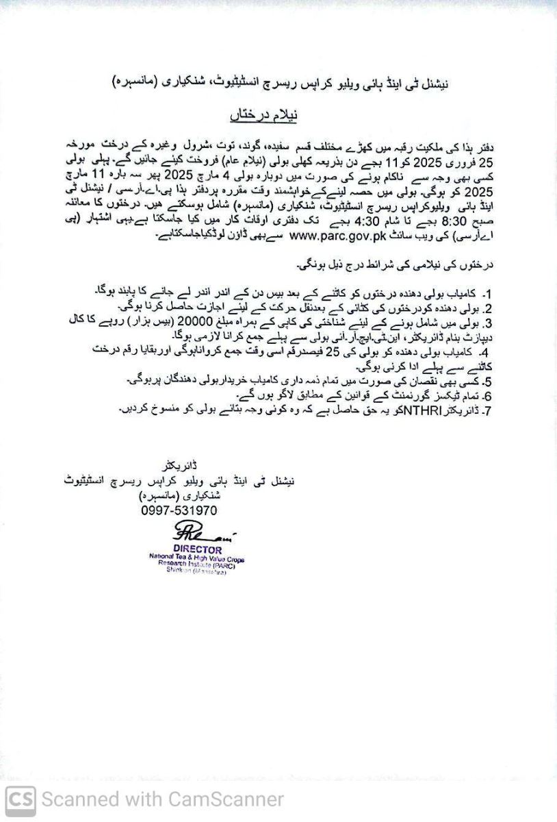 AUCTION NOTICE:REGARDING TREES AT NTHRI, SHINKIARI(MANSEHRA)