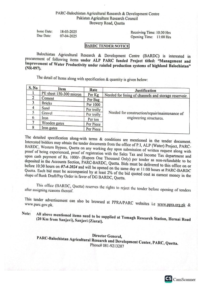 PAKISTAN AGRICULTURAL RESEARCH COUNCIL
