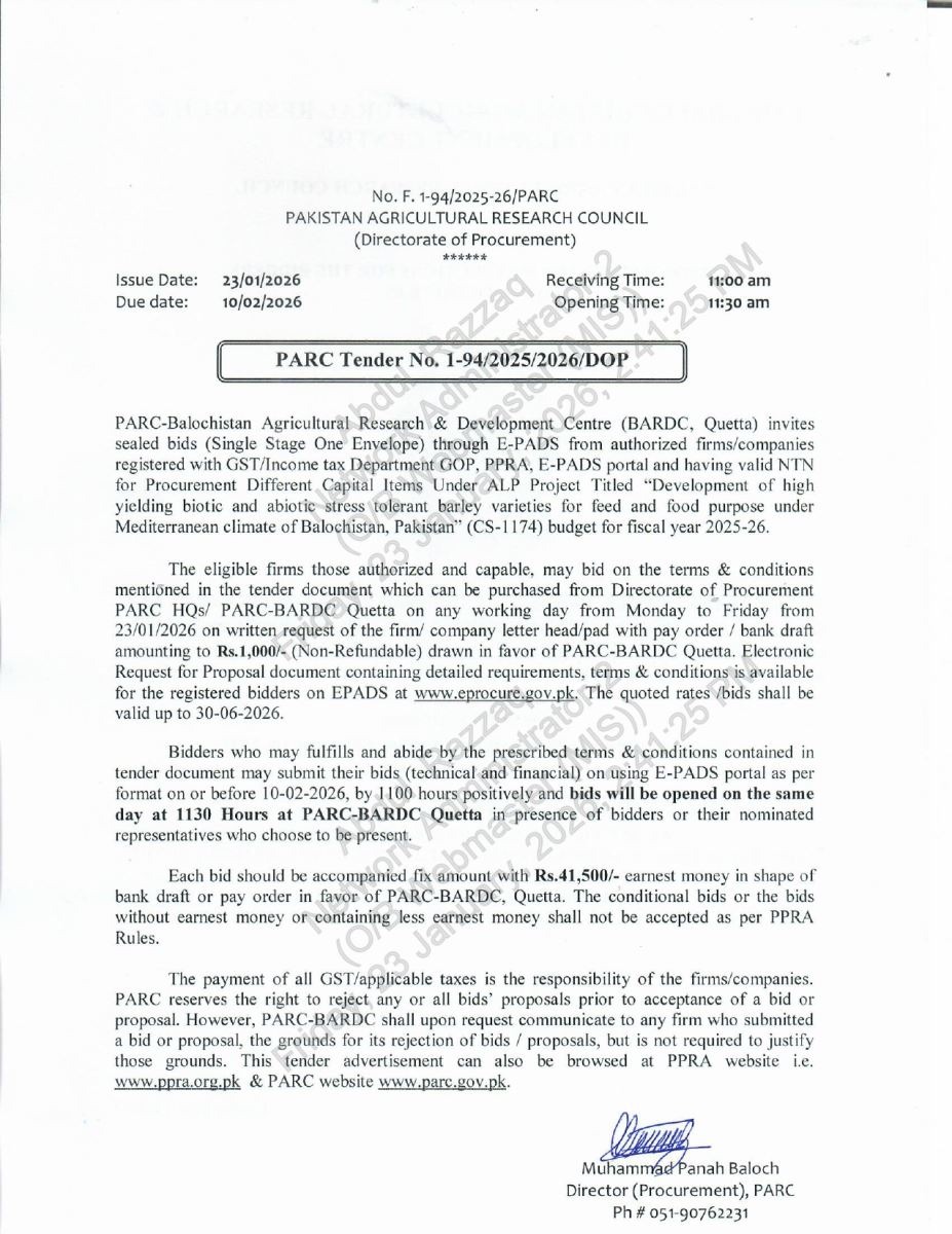 PAKISTAN AGRICULTURAL RESEARCH COUNCIL