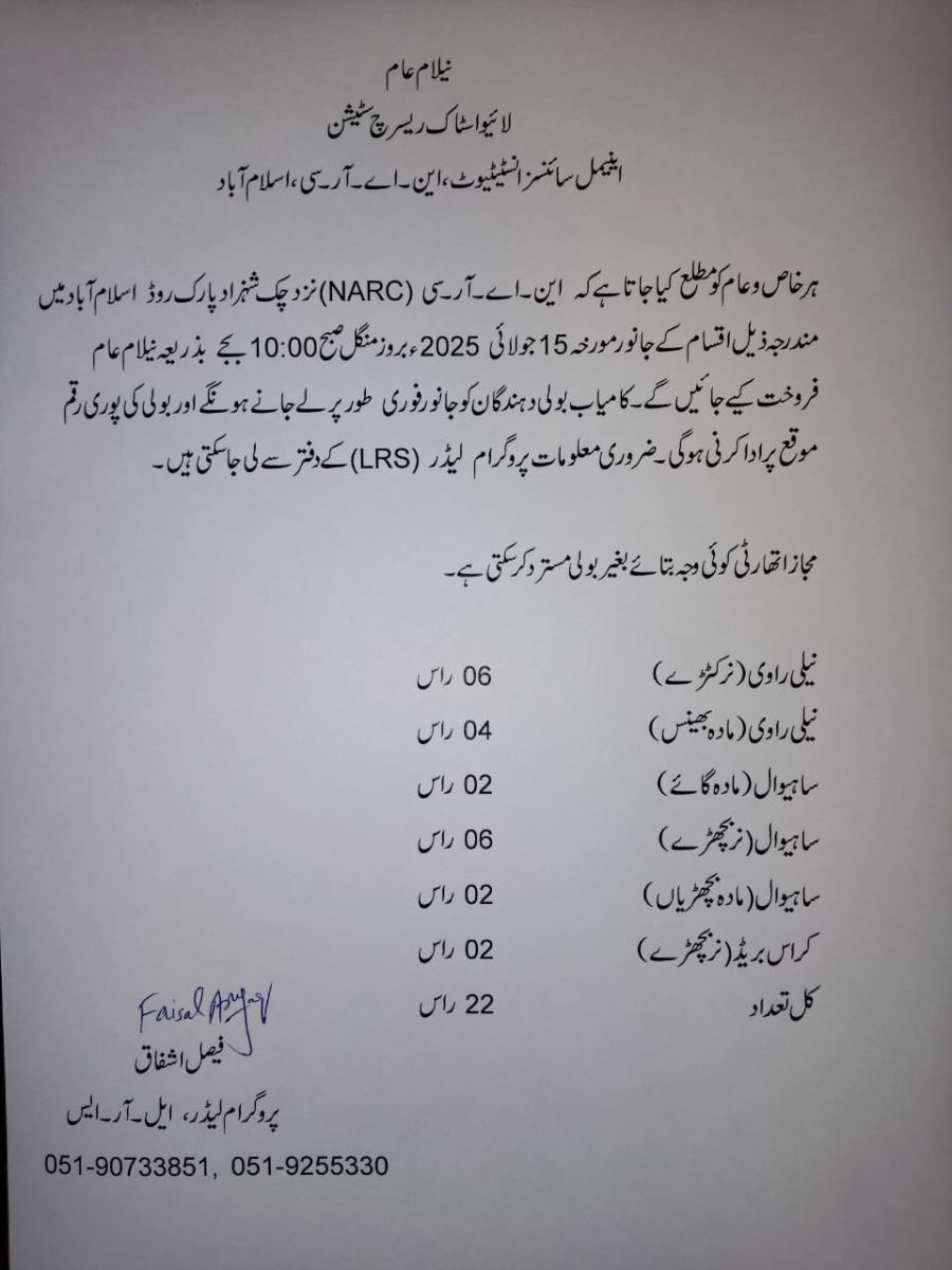 Auction Notice of Animals - LRS ASI NARC