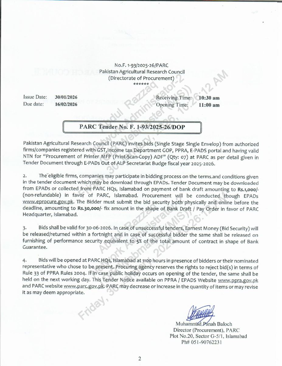 PARC INVITATION TO BID NO. F. 1-93/2025-26/DOP