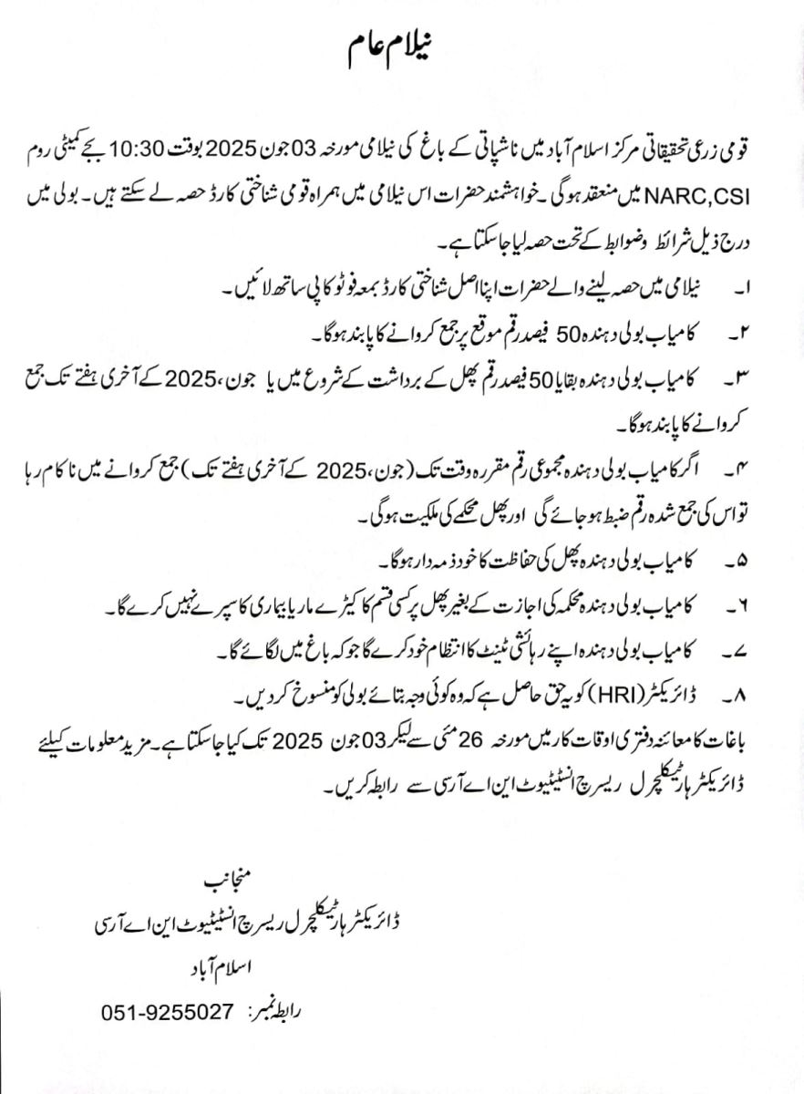 PAKISTAN AGRICULTURAL RESEARCH COUNCIL