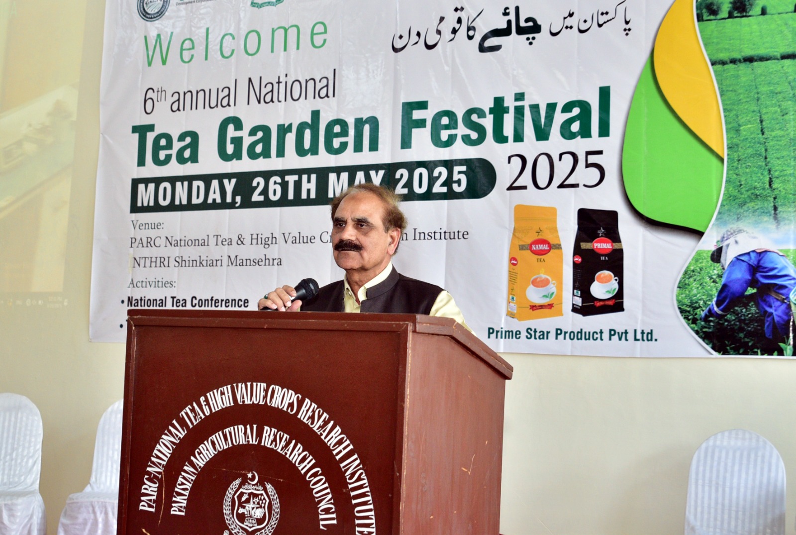 CHAIRMAN PARC, DR. GHULAM MUHAMMAD ALI ADRESSING THE 6TH ANNUAL NATIONAL TEA GARDEN FESTIVAL, HELD AT NTHRI, SHINKIARI, MANSEHRA