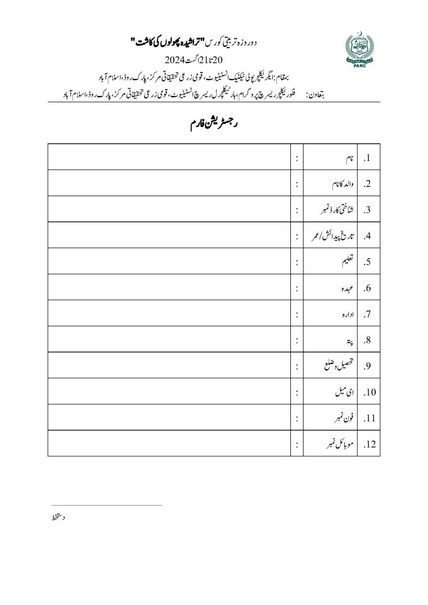 Two day training course on " Cut-Flowers Production" From 20-21 August 2024