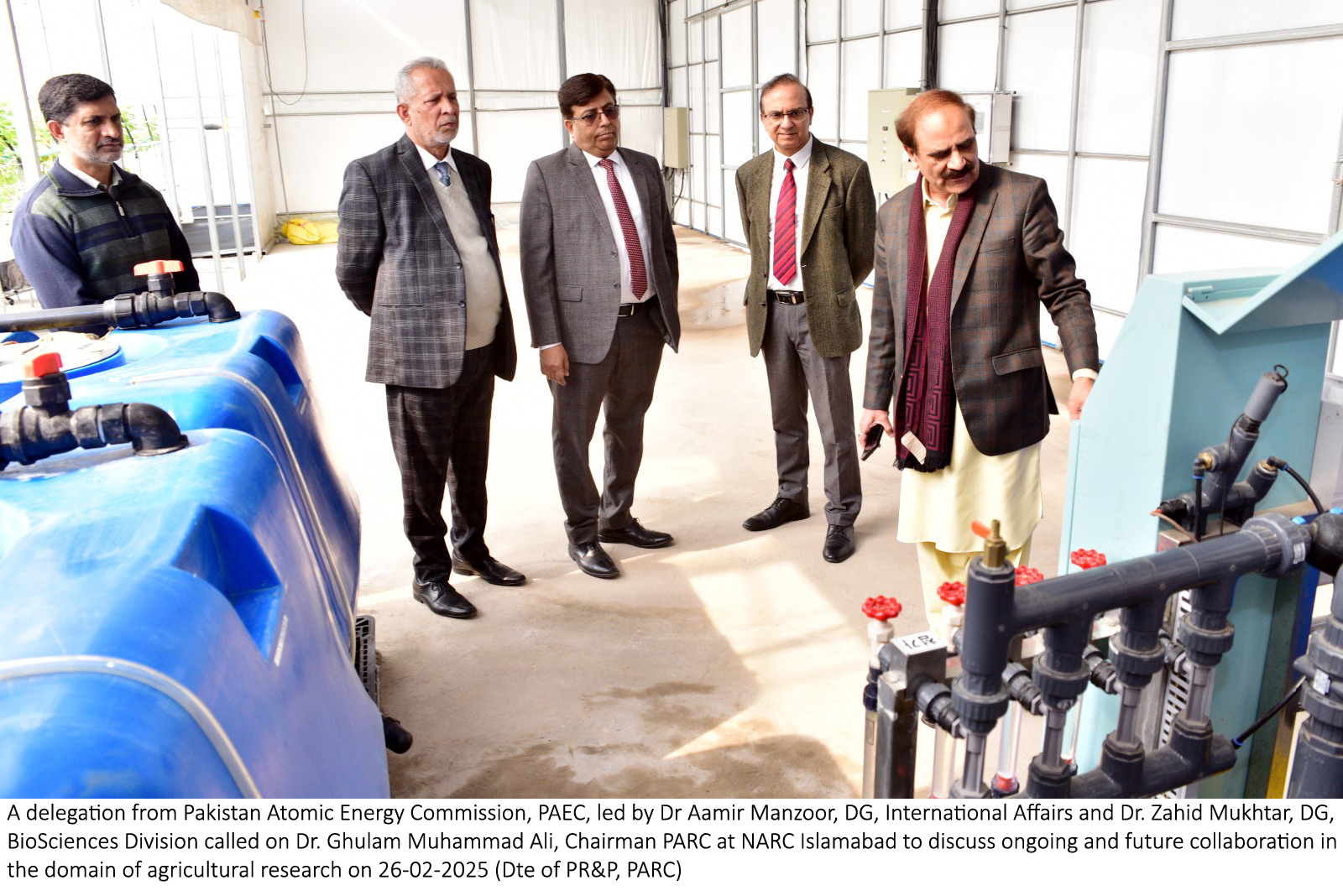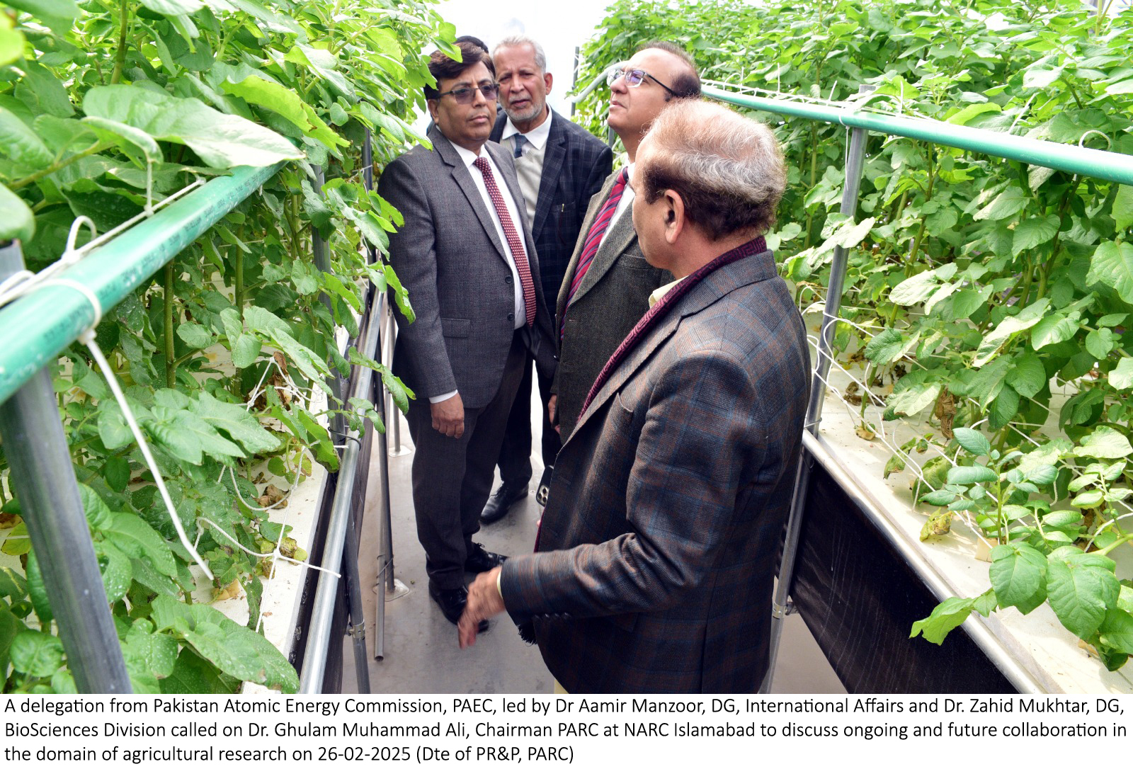 A delegation from Pakistan Atomic Energy Commission, PAEC, led by Dr Aamir Manzoor, DG, International Affairs and Dr. Zahid Mukhtar, DG, BioSciences Division called on Dr. Ghulam Muhammad Ali, Chairman PARC at NARC Islamabad to discuss ongoing and future collaboration in the domain of agricultural research on 26-02-2025 .jpeg)