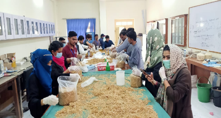 Hands-on Training on Spawn Production and Oyster Mushroom Business Farming at Sindh Agriculture University Tando Jam, Sindh