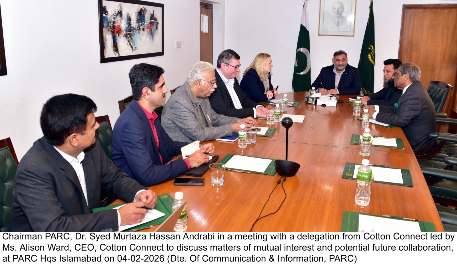 Chairman PARC, Dr. Syed Murtaza Hassan Andrabi in a meeting with a delegation from Cotton Connect led by Ms. Alison Ward, CEO, Cotton Connect to discuss matters of mutual interest and potential future collaboration, at PARC Hqs Islamabad on 04-02-2026.jpg)